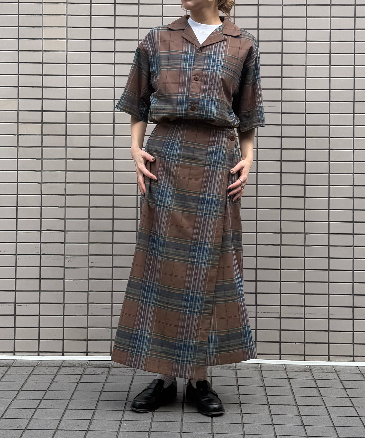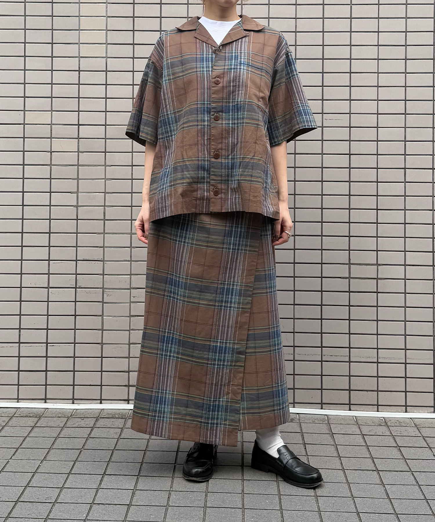 DARK MADRAS CHECK WRAP SKIRT