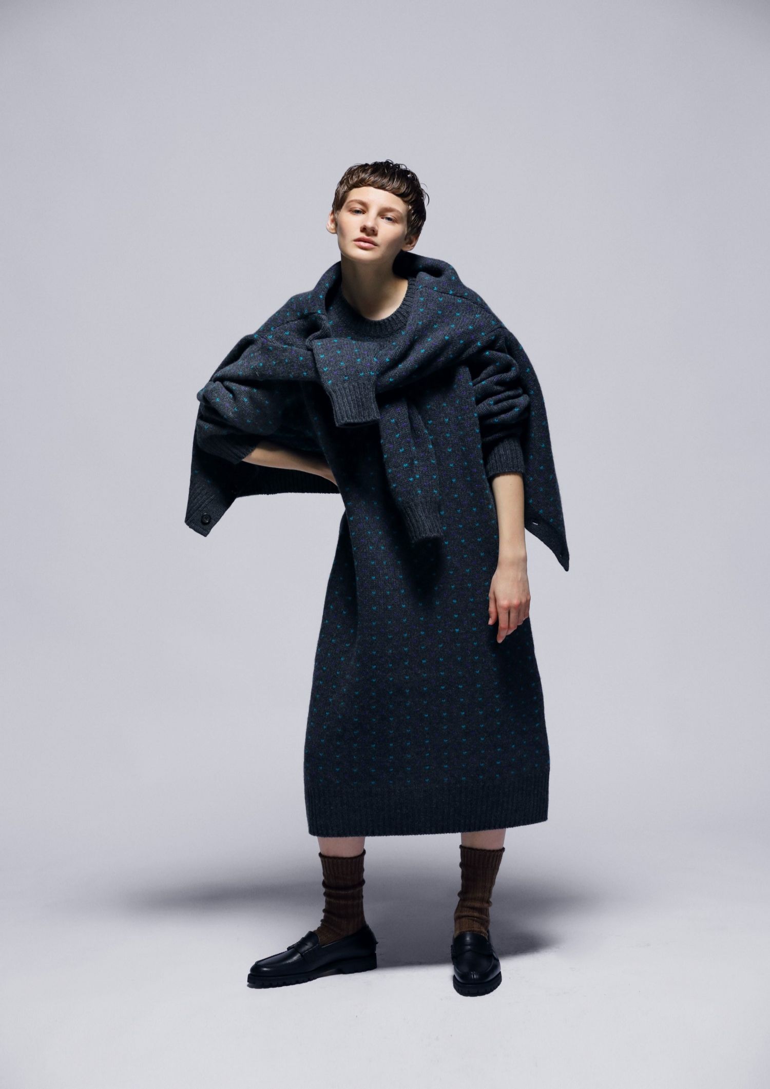 BIRD'S-EYE JACQUARD KNIT DRESS / CHARCOAL / 1