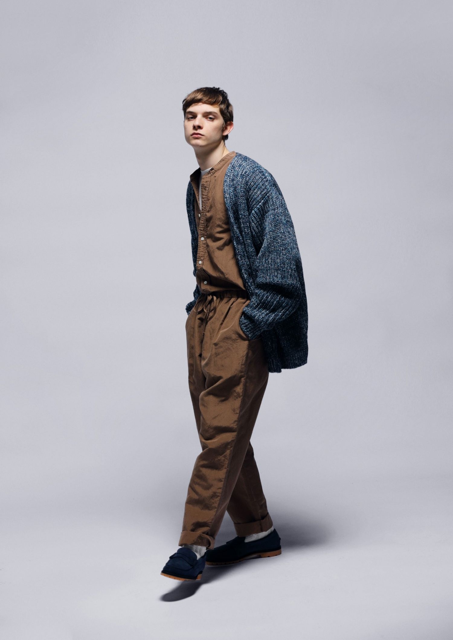BAND COLLAR SHIRT / BROWN / 2