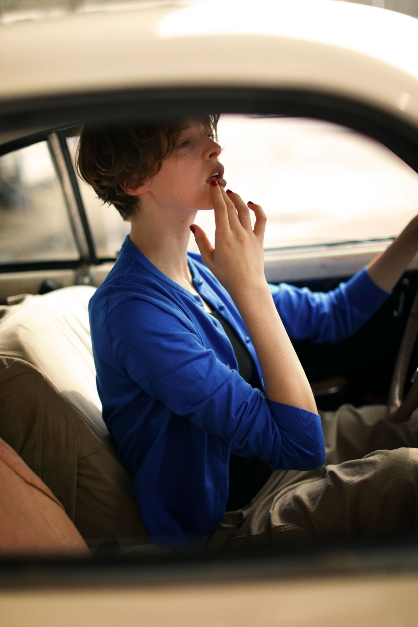 COTTON CREW-NECK CARDIGAN / BLUE / ONE SIZE