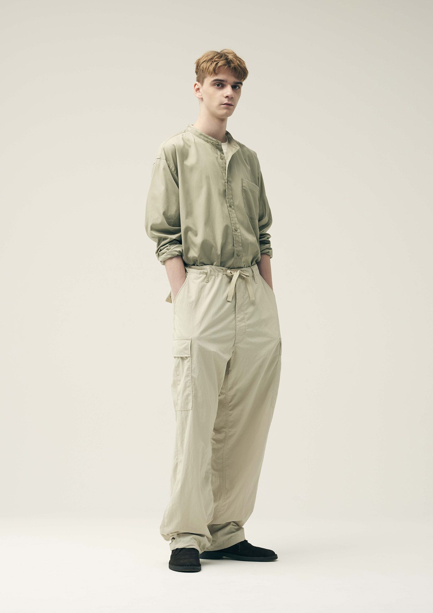 BAND COLLAR SHIRT /BEIGE /3