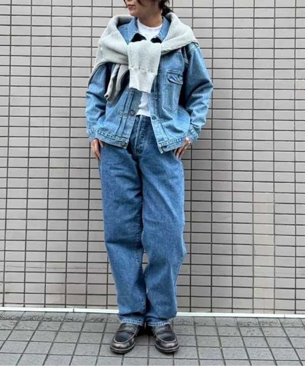 オーバーサイズのシルエットは、インナーにゆったりとしたトップスを重ねやすく、春先の軽い羽織りとしても活躍します。着る人の体に馴染む過程を楽しめる点も、このジャケットの大きな魅力です。