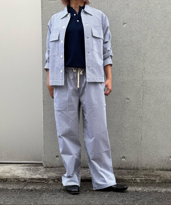 同素材のスカートもお作りしており、セットアップでワンピース風にもお召しいただけます。